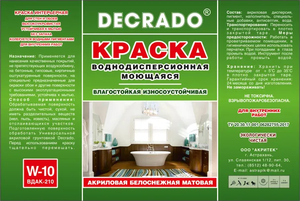 - Моющиеся краски — для помещений с повышенной влажностью и частой уборкой