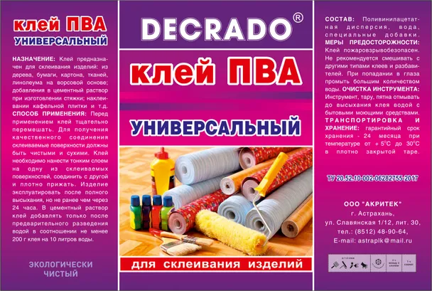 - Клей ПВА — универсальный связующий материал для различных строительных работ