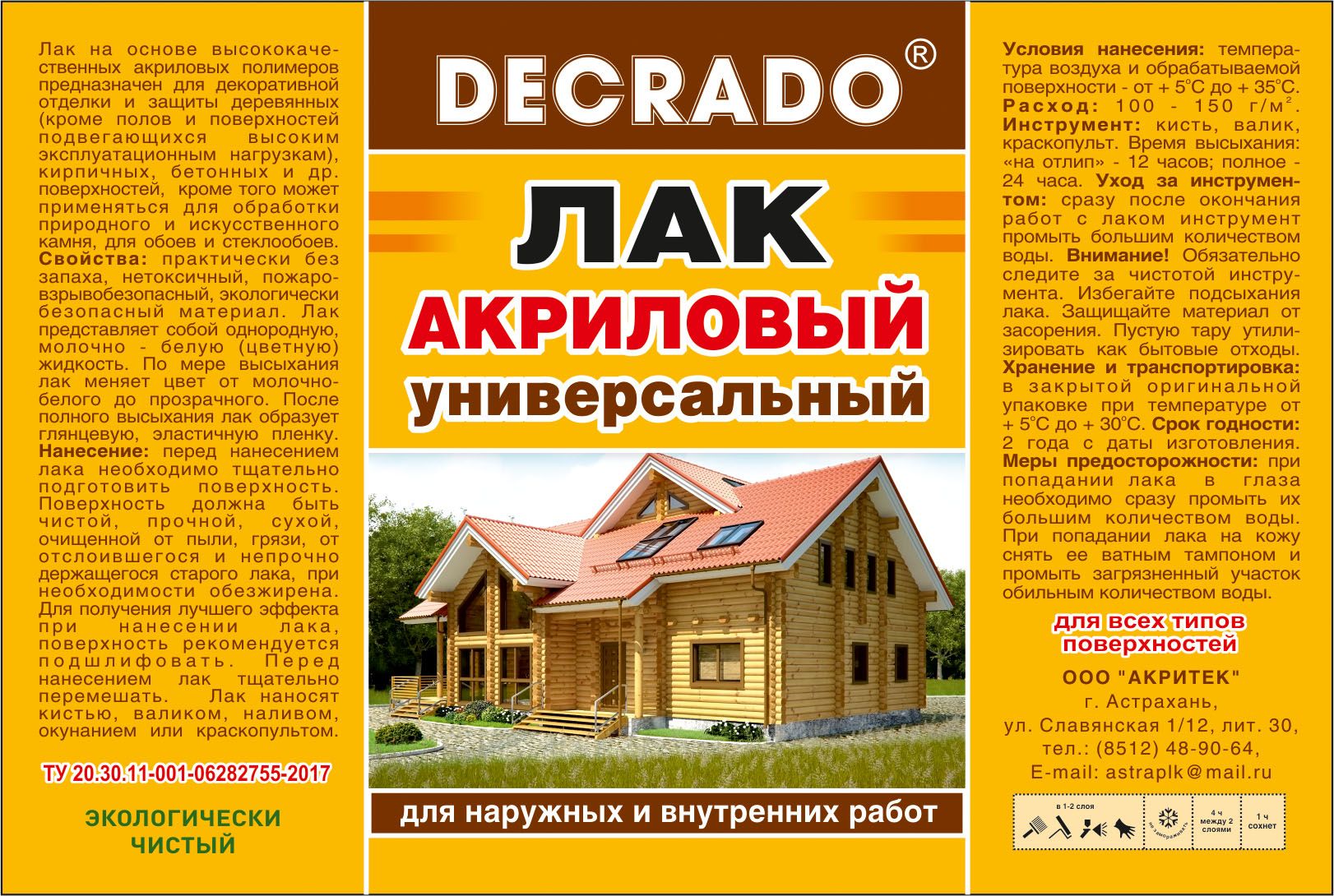 Лак акриловый DECRADO — универсальное защитное покрытие для различных поверхностей с глянцевым эффектом. Обеспечивает надёжную защиту и декоративный вид обработанных поверхностей.
